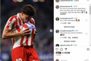 阿爾瓦雷斯社媒曬出慶祝進(jìn)球的照片,配文:“這不是我們想要的開局,但有一些日子超越了比賽結(jié)果,兒童節(jié)快樂!”