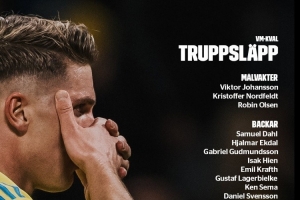 中前場:亞辛-阿亞里(布萊頓)、伯恩哈德森(基爾)、貝里瓦爾(熱刺)、伊蘭加(紐卡)、埃利亞松(雅典AEK)、約克雷斯(阿森納)、伊薩克(紐卡)、卡爾斯特羅姆(烏迪內(nèi)斯)、雨果-拉爾森(法蘭克福)、喬丹-拉爾森(哥本哈根)、納納西(斯特拉斯堡)、本杰明-尼格倫(凱爾特人)、薩萊特羅斯(AIK索爾納)