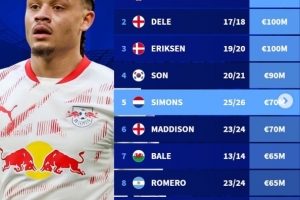 體育資訊8月30日訊 本周五,熱刺官方宣布以6000萬歐元從萊比錫簽下哈維-西蒙斯。根據(jù)德國轉(zhuǎn)會市場提供的數(shù)據(jù),西蒙斯的身價(jià)為7000萬歐元,在熱刺隊(duì)史足以排在第5位。