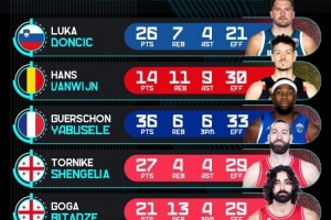 體育資訊9月3日訊 男籃歐錦賽結(jié)束了又一個比賽日的爭奪,今天,歐錦賽官推曬出了昨日的球員高光表現(xiàn)。