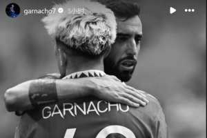 加納喬社媒曬出自己與前隊(duì)友B費(fèi)的賽場(chǎng)合照,當(dāng)時(shí)他身穿曼聯(lián)49號(hào)球衣。