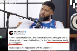 他當時說:“我從未想過離開洛杉磯。他們最開始給我的合同,我想那有些不尊重人,2年6000萬。我說,‘給我萊昂納德得到東西。’”