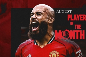 姆伯莫8月為曼聯(lián)出戰(zhàn)4場比賽,打進2球,曼聯(lián)官方曬出海報,宣布他當(dāng)選8月份隊內(nèi)最佳球員。