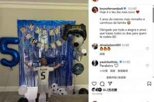 體育資訊9月7日訊 日前,B費(fèi)在社媒曬照發(fā)文,慶祝自己兒子五歲生日。照片中B費(fèi)的兒子身穿貝林厄姆球衣,并模仿其慶祝。