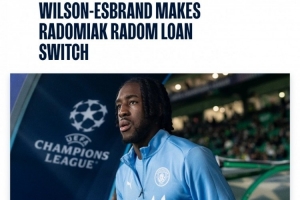體育資訊9月8日訊 曼城官宣,威爾遜-埃斯布蘭德外租至波蘭甲級聯(lián)賽球隊拉多米亞克,租期為一個賽季,轉會正待獲得國際許可。