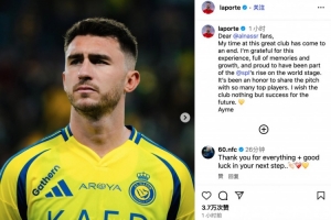 體育資訊9月12日訊 西班牙中衛(wèi)拉波爾特即將回歸畢爾巴鄂競(jìng)技,他在個(gè)人INS上發(fā)文,告別利雅得勝利,拉波爾特寫(xiě)道: