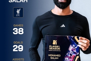 薩拉赫在上賽季為利物浦出戰(zhàn)的38場英超比賽中打進(jìn)29粒進(jìn)球,并送出18次助攻。