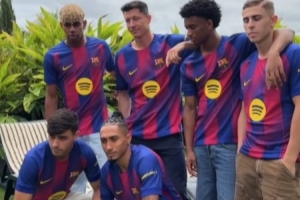 體育資訊7月3日訊 巴薩社媒曬出新賽季主場球衣宣傳片拍攝花絮,亞馬爾、萊萬、拉菲尼亞、佩德里、費爾明等人出鏡。