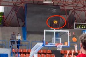 畫面中,當(dāng)時(shí)比賽還剩下0.8秒,余嘉豪所在球隊(duì)落后對(duì)手一分,他接應(yīng)隊(duì)友邊線傳球,轉(zhuǎn)身拋射壓哨打進(jìn),卻被裁判吹掉。
