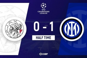 上半場(chǎng)傷停補(bǔ)時(shí)3分鐘,半場(chǎng)結(jié)束,國(guó)米暫1-0阿賈克斯。