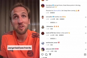 他也在賽后通過社媒慶祝勝利,并配文:“剛剛回家。精彩三分入袋,一場(chǎng)重要的勝利!回應(yīng)穆勒,讓我們期待更多(帽子戲法)到來?!蹦吕找铂F(xiàn)身評(píng)論區(qū)并驚嘆:“又一個(gè)(帽子戲法)!”