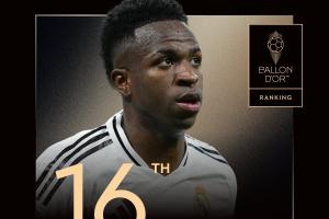 體育資訊9月23日訊 2025年金球獎排名公布,維尼修斯最終排名第16。