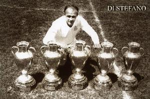 1953年9月23日,迪斯蒂法諾在對陣南錫的熱身賽中首次代表皇馬出場,他頭球攻入個人皇馬生涯首球。迪斯蒂法諾于1953年-1964年效力皇馬,在396場正式比賽中攻入308球,這位史上最出色球員帶隊獲得歐冠五連冠,他還獲得1次洲際杯冠軍、2次拉丁杯冠軍、8次聯(lián)賽冠軍等榮譽(yù)。個人層面,迪斯蒂法諾獲得5次西甲金靴。