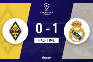 上半場沒有補(bǔ)時(shí),阿拉木圖凱拉特0-1皇馬。