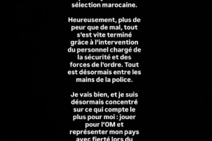 “幸運(yùn)的是,驚嚇大于傷害,事件在安保人員和執(zhí)法部門的及時介入下迅速平息。目前一切已交由警方處理。我現(xiàn)在很好,也已將注意力重新放在最重要的事情上:為馬賽效力,并在即將到來的國家隊集訓(xùn)中自豪地代表祖國出戰(zhàn)?!?/p>