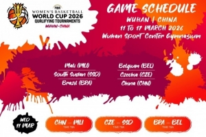 2026女籃世界杯預(yù)選賽武漢賽區(qū)日程出爐,比賽屆時將在武漢體育中心體育館進(jìn)行,每個比賽日三場比賽。中國隊日程安排如下(開球時間待定):