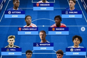 中場:沃頓(水晶宮,4500萬歐)、劉易斯-斯凱利(阿森納,4500萬歐)、梅努(曼聯(lián),5000萬歐)