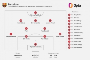 體育資訊10月22日訊 北京時(shí)間今天0點(diǎn)45,歐冠聯(lián)賽階段第三輪巴薩對陣奧林匹亞科斯,此役雙方首發(fā)已經(jīng)公布。