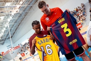 體育資訊7月6日訊 巴薩官推曬照,巴爾德與加索爾互換球衣。