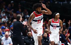 體育資訊10月29日訊 NBA常規(guī)賽,奇才半場72-68領(lǐng)先76人。