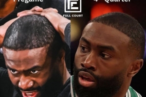 據(jù)此前報道,綠軍球星杰倫-布朗遭遇了“發(fā)際線危機(jī)”,本賽季至今已經(jīng)多次將自己的發(fā)際線粉蹭到對手球衣上。