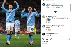 體育資訊11月3日訊 2025-26賽季英超第10輪,曼城3-1戰(zhàn)勝伯恩茅斯。賽后,本場比賽送出2次助攻的謝爾基在社交媒體慶祝球隊(duì)獲勝。