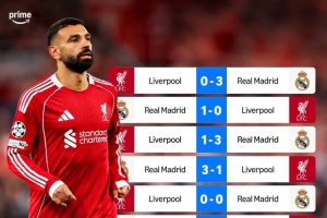 據(jù)媒體統(tǒng)計,近9次對陣皇馬,利物浦僅取勝1場,具體戰(zhàn)績1勝1平7負,打進6球丟17球。
