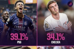 體育資訊7月7日訊 世俱杯四強(qiáng)已全部出爐。OPTA超級(jí)計(jì)算機(jī)預(yù)測了四強(qiáng)贏得世俱杯的概率,其中巴黎以39.1%居首,切爾西34.1%緊隨其后,皇馬24.2%排名第三。