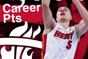 目前,約維奇已經(jīng)得到10分,個人生涯總得分突破1000大關,這是他生涯第116場比賽。