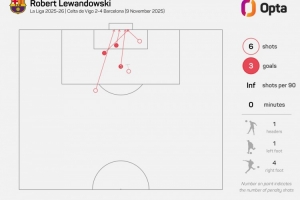據(jù)Opta統(tǒng)計(jì),37歲80天的萊萬(wàn)是本世紀(jì)西甲第三年長(zhǎng)的戴帽球員,僅次于若熱-莫利納(39歲241天)、華金-桑切斯(38歲140天)。