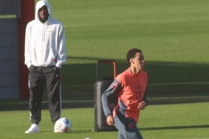 值得一提的是,好友阿方索·戴維斯(25歲/7個半月前右膝十字韌帶撕裂)在訓(xùn)練課開始后不久便身著休閑服來到訓(xùn)練場。這位加拿大國腳隨著穆西亞拉用手機連放的XXL音響中說唱樂節(jié)奏舞動,并為正在進行恢復(fù)訓(xùn)練的伙伴歡呼助威。這位左后衛(wèi)情緒高漲,強勁的節(jié)拍響徹拜仁訓(xùn)練基地。