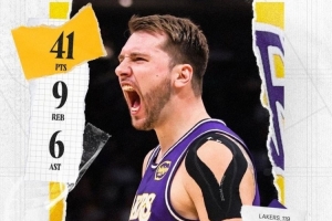 賽后湖人發(fā)布東契奇本場數(shù)據(jù)海報(bào):賽季第四次砍下40+!四次40+也是聯(lián)盟本賽季最多的。