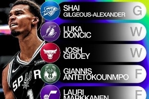 其中世界隊(duì)為:亞歷山大、東契奇、吉迪、字母哥、馬爾卡寧、約基奇、文班亞馬、申京。