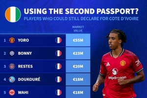 體育資訊11月22日訊 德國轉(zhuǎn)會市場更新社媒冬天,盤點了仍可以選擇為非洲國家隊效力的球員。