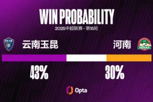 今晚20:00,河南隊(duì)將客場(chǎng)挑戰(zhàn)目前排名中超第8名的云南玉昆。根據(jù)OPTA預(yù)測(cè),云南玉昆有43%幾率獲勝,而河南隊(duì)有30%幾率獲勝。