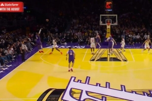 GIF-詹姆斯壓哨三分命中