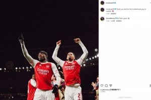 本場比賽馬杜埃凱打進個人阿森納生涯處子球,賽后他也在社媒曬出與隊友慶祝進球的合照,配文寫道:“感謝上帝創(chuàng)造如此棒的兄弟情誼!”