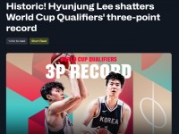 日前,李賢重在對(duì)陣中國(guó)男籃的比賽中砍下33分,帶領(lǐng)球隊(duì)在中國(guó)隊(duì)的主場(chǎng)贏得世預(yù)賽第1場(chǎng)勝利。全場(chǎng)比賽他投中9記三分球,打破了世界杯資格賽階段單場(chǎng)三分球最高紀(jì)錄,成為歷史第1人。