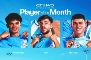體育資訊12月1日訊 曼城官方公布11月隊(duì)內(nèi)最佳候選,奧賴?yán)?、尼科·岡薩雷斯、福登三人入圍。