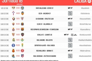 體育資訊12月2日訊 西甲官方公布第18輪聯(lián)賽時(shí)間安排,以下是具體對(duì)陣信息。