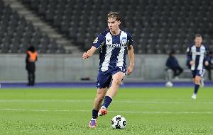 體育資訊12月3日訊 柏林赫塔在本輪德國(guó)杯6-1大勝凱澤斯勞滕,16歲小將艾?;舳魅〉眠M(jìn)球。