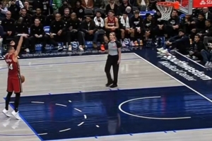 GIF-希羅練罰球 女裁判傳擊地球無意打到小希羅