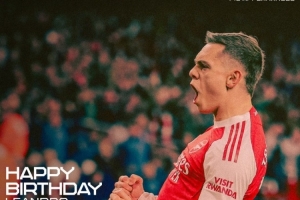 阿森納官方社媒曬出為特羅薩德制作的生日海報(bào),配文:“生日快樂,萊安德羅!”