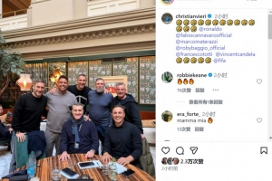 體育資訊12月5日訊 意大利足壇名宿維耶里更新社媒動(dòng)態(tài),曬出與大羅、巴喬等人的合照。