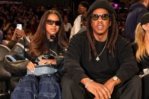 今日,美國著名說唱歌手JAY-Z帶女兒BLUE來到場邊觀戰(zhàn)湖人。