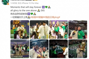 足協(xié)杯決賽,國安3-0戰(zhàn)勝河南隊奪得冠軍,法比奧上演帽子戲法,他發(fā)文慶祝奪冠,這位前鋒在個人社媒寫道:將永遠存在的時刻?????? 一切榮耀歸于上帝??