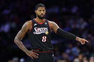 上半場,76人前鋒保羅·喬治高效發(fā)揮,打了14分鐘11投5中,三分5中4、罰球3中3砍最高17分外加1助攻1蓋帽,正負(fù)值+5。