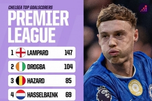 體育資訊12月15日訊 英超第16輪比賽,帕爾默復(fù)出破門,幫助切爾西主場2-0擊敗埃弗頓。帕爾默為切爾西攻入39粒英超進球,排名切爾西隊史英超射手榜第9位。
