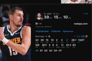 本場比賽約基奇砍下39分15板10助2斷2帽,申京砍下33分10板10助2斷。