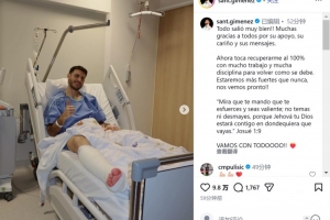 希門尼斯寫道:一切進展順利!非常感謝大家的支持、關(guān)愛和留言?,F(xiàn)在,我將全力以赴恢復到100%的狀態(tài),通過辛勤的努力和嚴格的自律以最佳狀態(tài)回歸。我們會比以往任何時候都更加強大,很快再見!